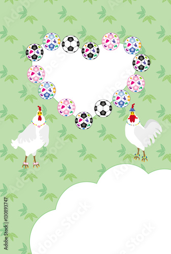 "ニワトリとサッカーボールの可愛いハート型メッセージカード ...